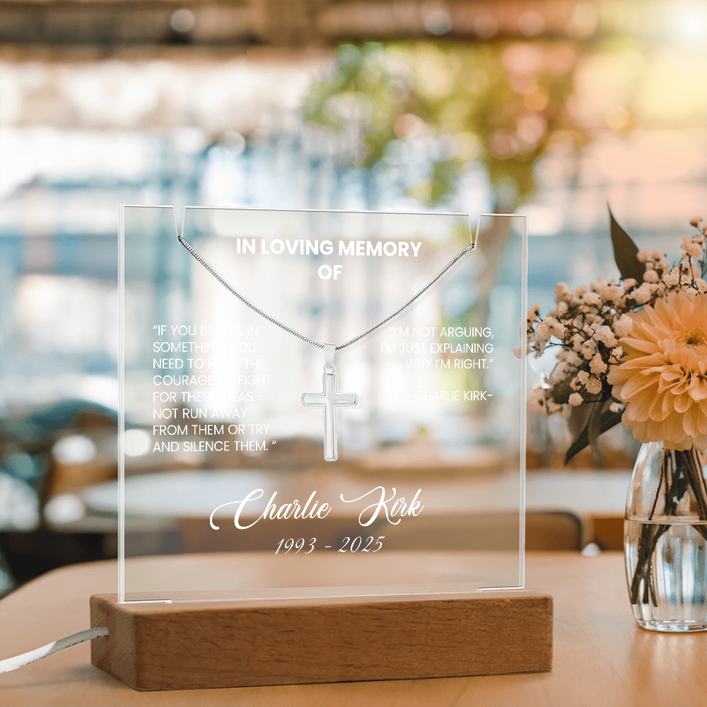 [Limited Edition] - Charlie Kirk Memorial Acrylic -and- Artisan Cross Necklace