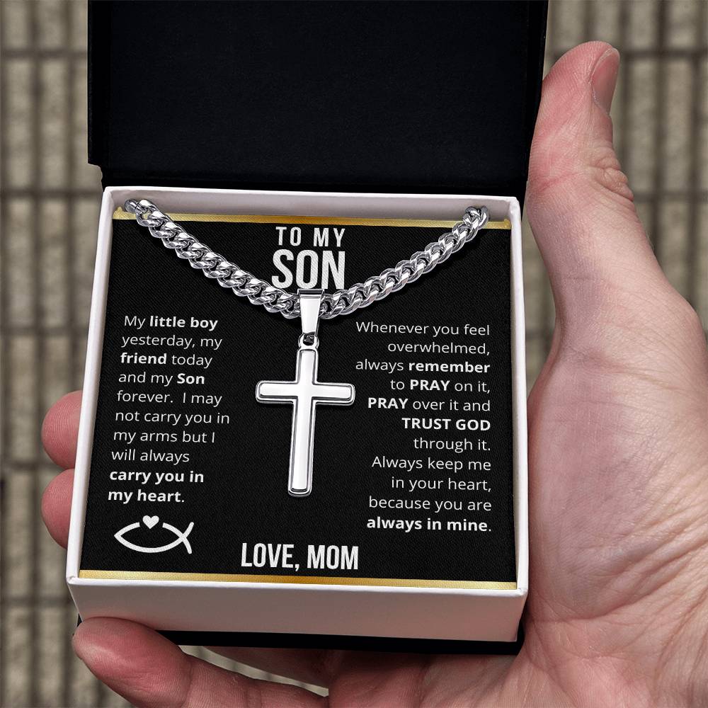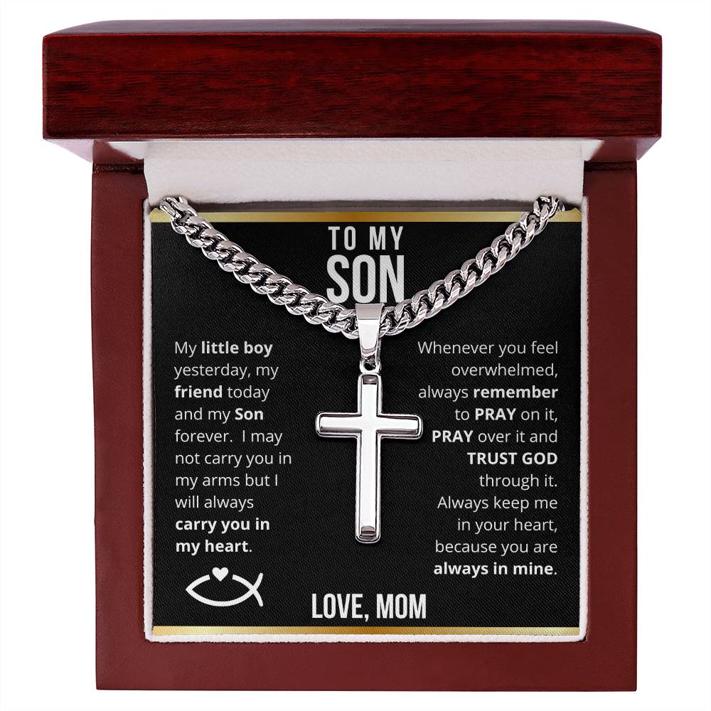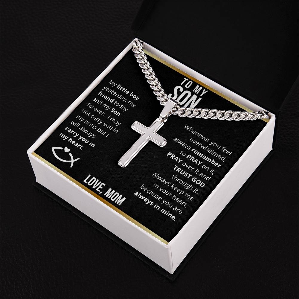 To My Son from Mom - Trust God Laser Engraved Cross Necklace
